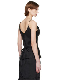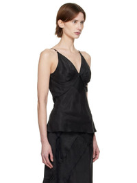 Bias-cut tencel twill tank top. Draping throughout. · Plunging V-neck · Pleats at cups · Trim with raw edge at chest · Integrated self-tie bow accent at back · Adjustable spaghetti straps · Low back Supplier color: Black 100% tencel. Made in United Kingdom 251148F111000