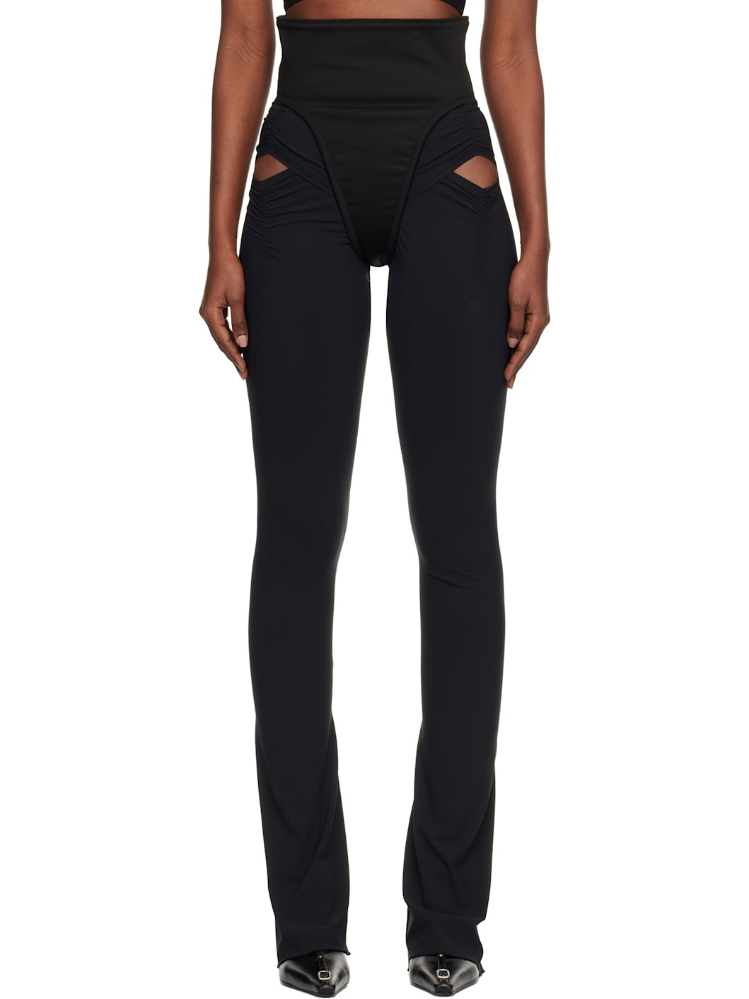 Stretch cotton twill and stretch nylon jersey leggings. · Paneled construction · Ruching at front · Cutout at outseams · Zip closure at back Supplier color: Black Body 1: 98% cotton, 2% polyurethane. Body 2: 75% polyamide, 25% elastane. Made in United Kingdom 252148F085000