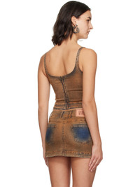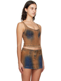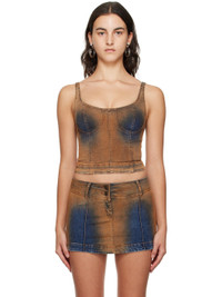 Stretch denim bustier-style tank top. Fading throughout. · Scoop neck · Fixed shoulder straps · Zip closure at back · Contrast stitching in orange Supplier color: Trainwreck 88% cotton, 7% recycled polyester, 5% elastane. Made in Italy 232148F111003