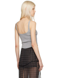 Rib knit cotton tank top. Pointelle knit detailing throughout. · Scoop neck · Twin vents at front cropped hem Supplier color: Grey 100% cotton. Made in United Kingdom 241148F111000