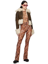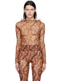Sheer polyester mesh blouse. · Floral pattern printed throughout · Ruffled edges at collar, hem, and cuffs Supplier color: Chain floral 92% polyester, 8% elastane. Made in Italy 231148F107023