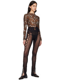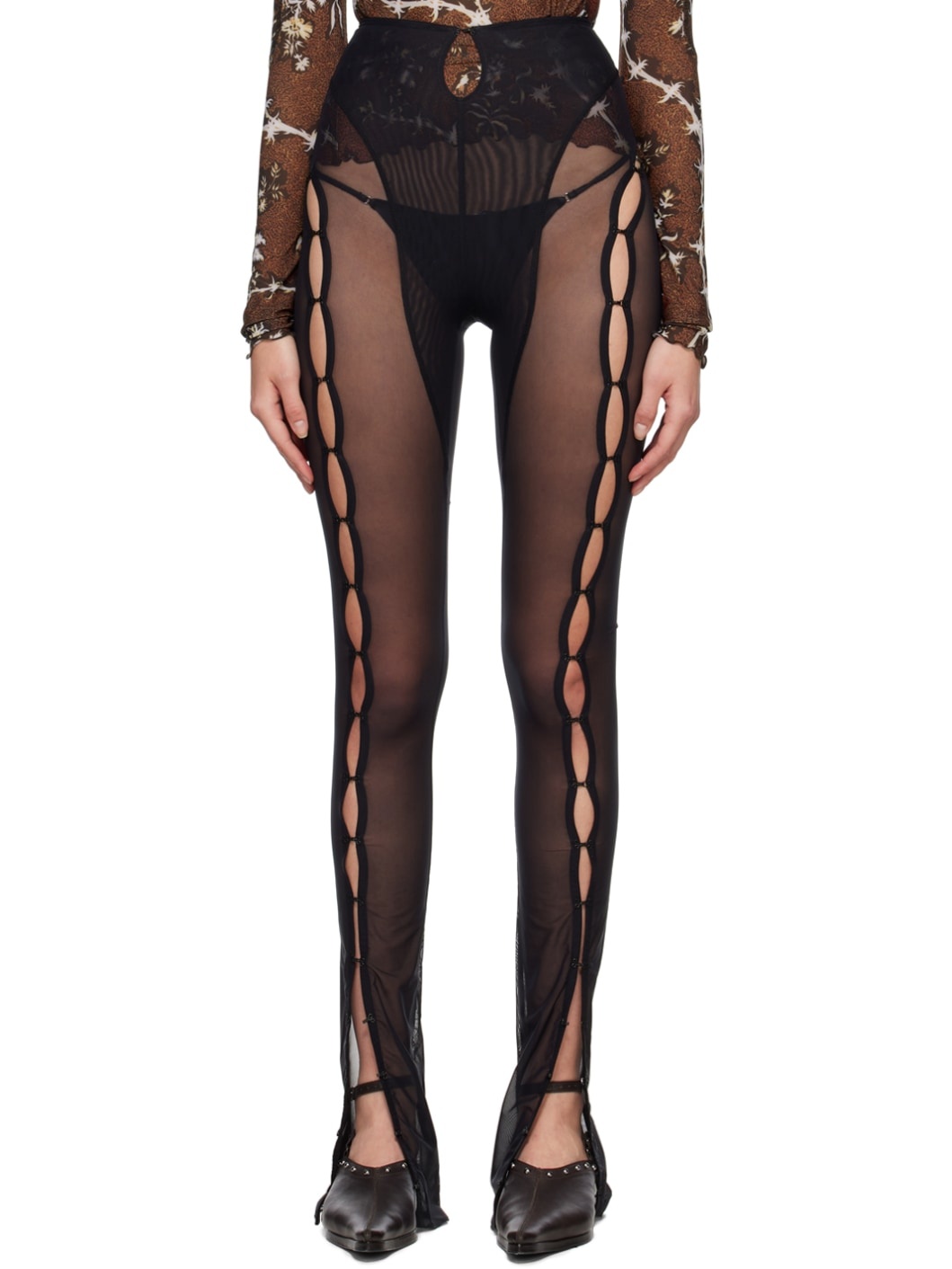 Semi-sheer polyester mesh trousers. Cut outs and hook-eye fastening throughout. · Paneled construction · Elasticized waistband Available exclusively at SSENSE. Supplier color: Dark 100% polyester. Made in United Kingdom 222148F087014