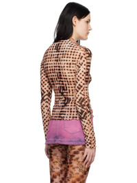 Semi-sheer stretch polyester mesh blouse. Modified plaid pattern printed throughout. · Lettuce edge at crewneck, hem, and cuffs · Overlock stitching throughout Available exclusively at SSENSE. Supplier color: Bleach plaid pink 84% polyester, 16% elastane. Made in Italy 231148F107001