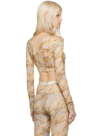 Semi-sheer stretch polyester jersey blouse. Graphic pattern printed throughout. · Layered construction · Criss-crossing straps at front · Cutouts at elasticized cropped hem and armscyes Available exclusively at SSENSE. Supplier color: Flame 84% polyester, 16% elastane. Made in Portugal 241148F107008