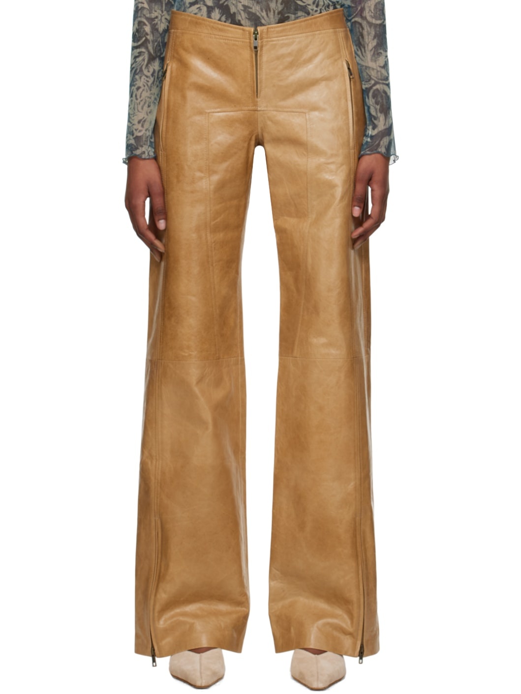 Grained leather pants. · Zip-fly · Four-pocket styling · Zip expansion panel at outseams · Partial Cupro twill lining Supplier color: Tan Body: 100% leather. Lining: 100% cupro. Made in United Kingdom 231148F084001