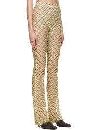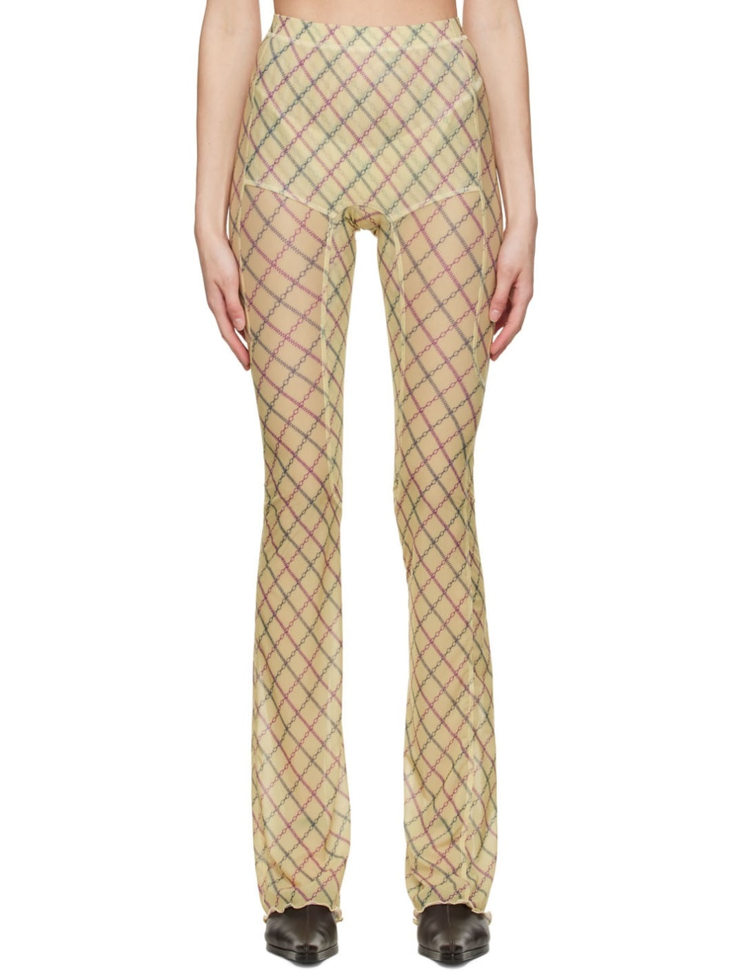 Semi-sheer stretch polyester jersey trousers. Graphic pattern printed throughout. · High-rise · Elasticized waistband · Lettuce edge at cuffs · Overlock stitching throughout · Partial semi-sheer lining Supplier color: Yellow chain argyle 75% polyester, 25% elastane. Made in Italy 221148F087013