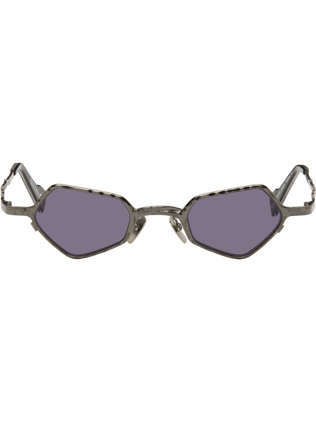 Handcrafted hexagonal metal-frame sunglasses. · Engraved detailing throughout · Purple lenses · Adjustable metal nose pads · Acetate temple tips · Includes pouch · Size: 45.25 145 Supplier color: Gunmetal Metal, acetate. Made in Italy 252872M134011
