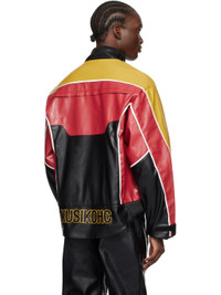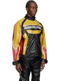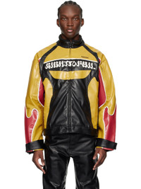 Buffed faux-leather jacket. · Paneled construction · Rib knit trim at stand collar · Zip closure · Logo embroidered at chest · Logo appliques at chest and back hem · Concealed zip pocket at sleeves and back · Velcro tab at cuffs · Locker loop at inner collar · Zip pocket at interior · Full satin lining Supplier color: Black/Yellow yasmine Body 1: 50% polyurethane, 50% polyester. Body 2: 60% polyester, 40% polyurethane. Lining: 100% polyester. Made in Italy 241216M180005