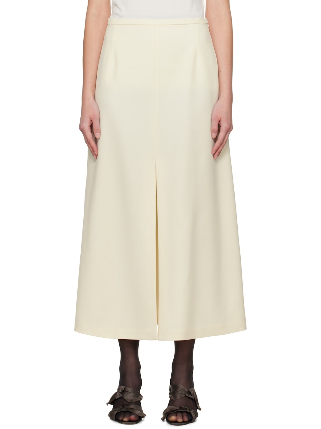 Stretch virgin wool- and cashmere-blend twill midi skirt. · Darts at waistband · Vent at front and back hem · Zip closure at side seam · Unlined Supplier color: Off white 92% virgin wool, 5% cashmere, 3% elastane. Made in Hungary 251190F092000