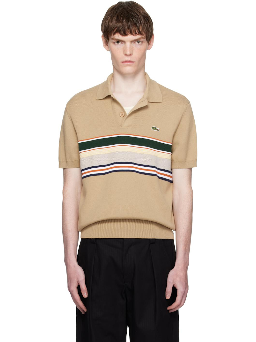 12-gauge knit organic cotton- and wool-blend polo. · Spread collar · Two-button placket · Embroidered logo patch at chest · Striped trim at front · Rib-knit hem and cuffs Supplier color: Beige/White/Navy Blue/Yellow Body: 80% cotton, 20% wool. Trim: 48% cotton, 38% polyester, 14% wool. Made in France 252268M212003