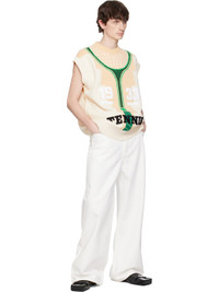Crocheted cotton- and nylon-blend sweater vest. · Rib-knit crewneck, hem, and armscyes · Intarsia graphic and text at front · Embroidered text at front hem Supplier color: White 65% cotton, 32% polyamide, 3% polyester. Made in Italy 251268M201004