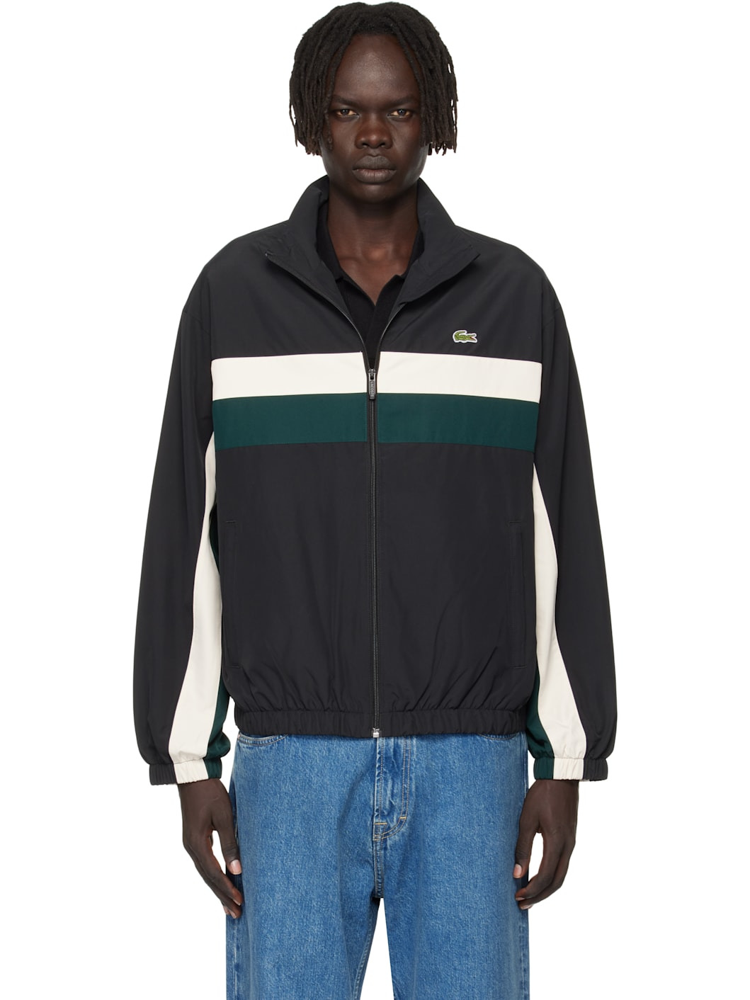 Taffeta track jacket. · Ripstop stripes throughout · Stand collar · Zip closure · Embroidered logo patch at chest · Zip pockets at front · Elasticized hem and cuffs · Full mesh lining Supplier color: Black/Lapland 100% polyester. Made in Viet Nam 252268M202012
