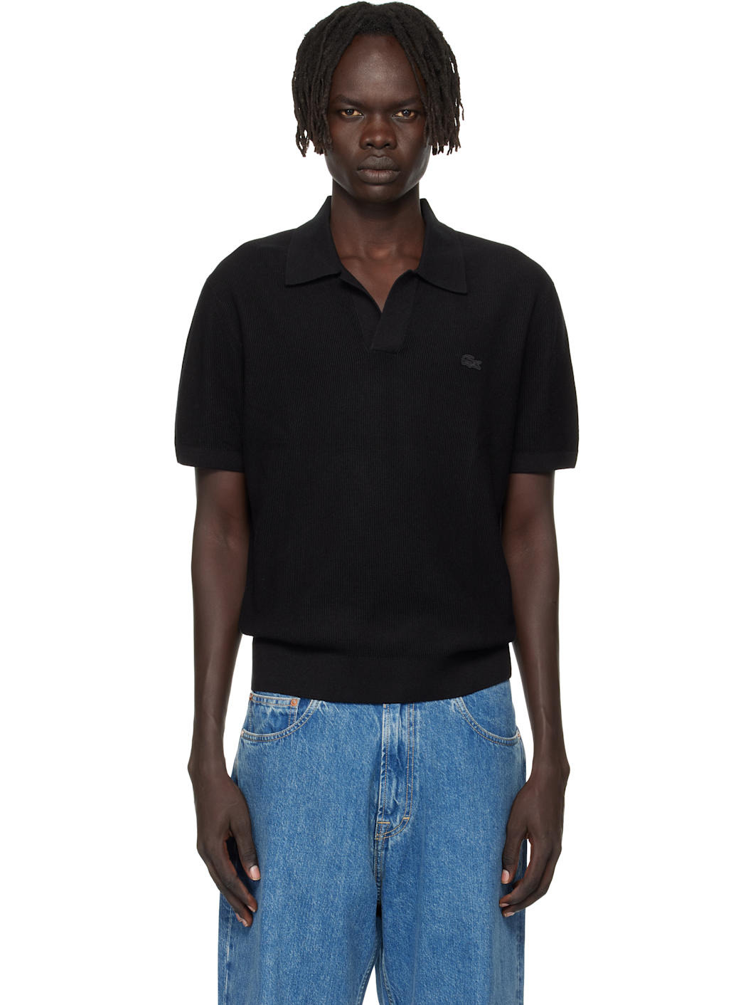 14-gauge knit cotton- and wool-blend polo. · Rib-knit open spread collar, hem, and cuffs · Embroidered logo patch at chest Part of the Paris collection. Supplier color: Black Body: 80% cotton, 20% wool. Trim 1: 67% cotton, 21% wool, 11% polyamide, 1% elastane. Trim 2: 75% cotton. 23% wool, 1% polyester, 1% elastane. Made in Viet Nam 252268M212014