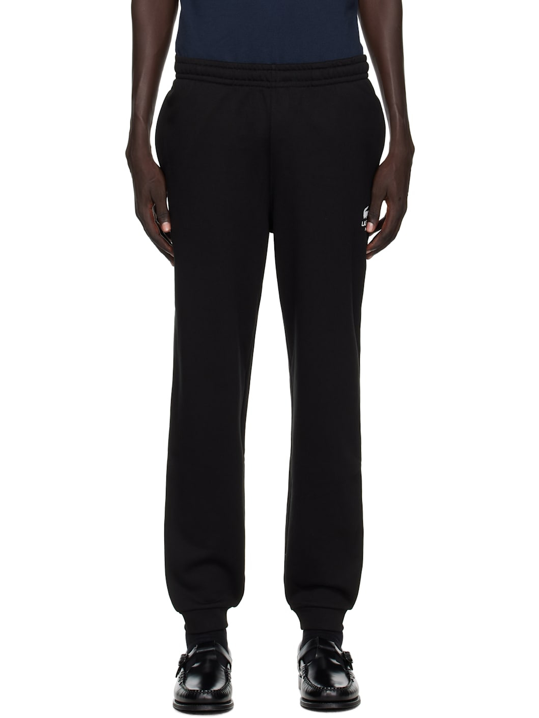 Cotton French terry sweatpants. · Tapered · Concealed drawstring at elasticized waistband · Three-pocket styling · Logo printed at front · Rib-knit cuffs · Embroidered logo patch at back Supplier color: Black Body: 100% cotton. Trim: 98% cotton, 2% elastane. Made in Viet Nam 252268M190003