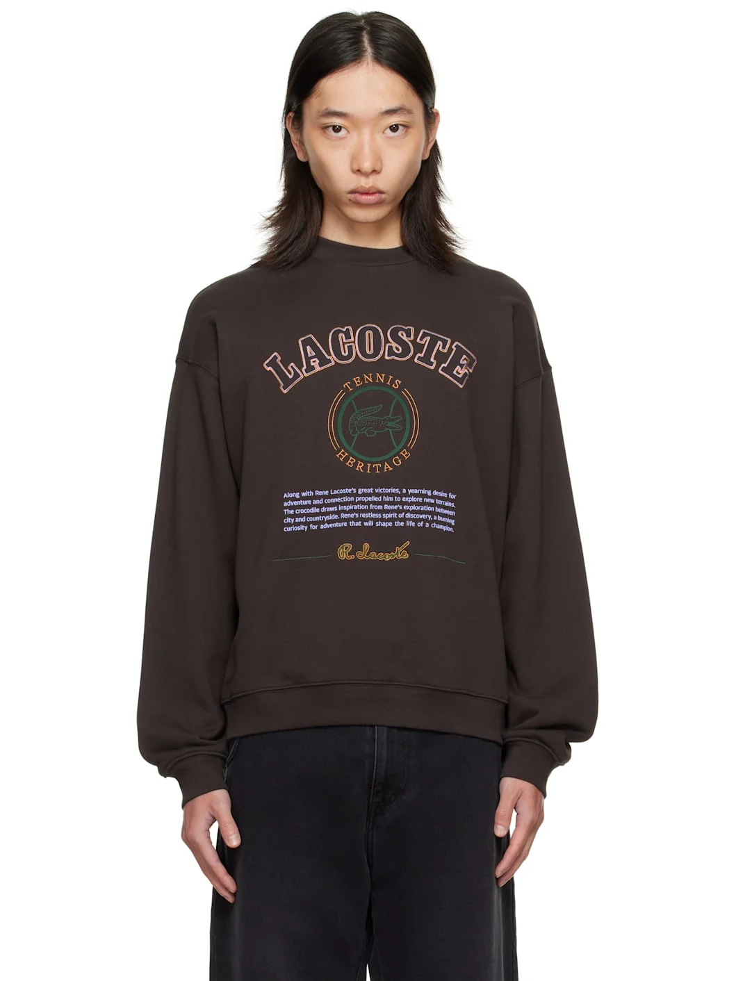 Cotton thermal terry sweatshirt. · Rib-knit crewneck, hem, and cuffs · Puff-printed and embroidered logo graphic at chest · Embroidered logo patch at back collar Supplier color: Port 100% cotton. Made in Tunisia 252268M204000