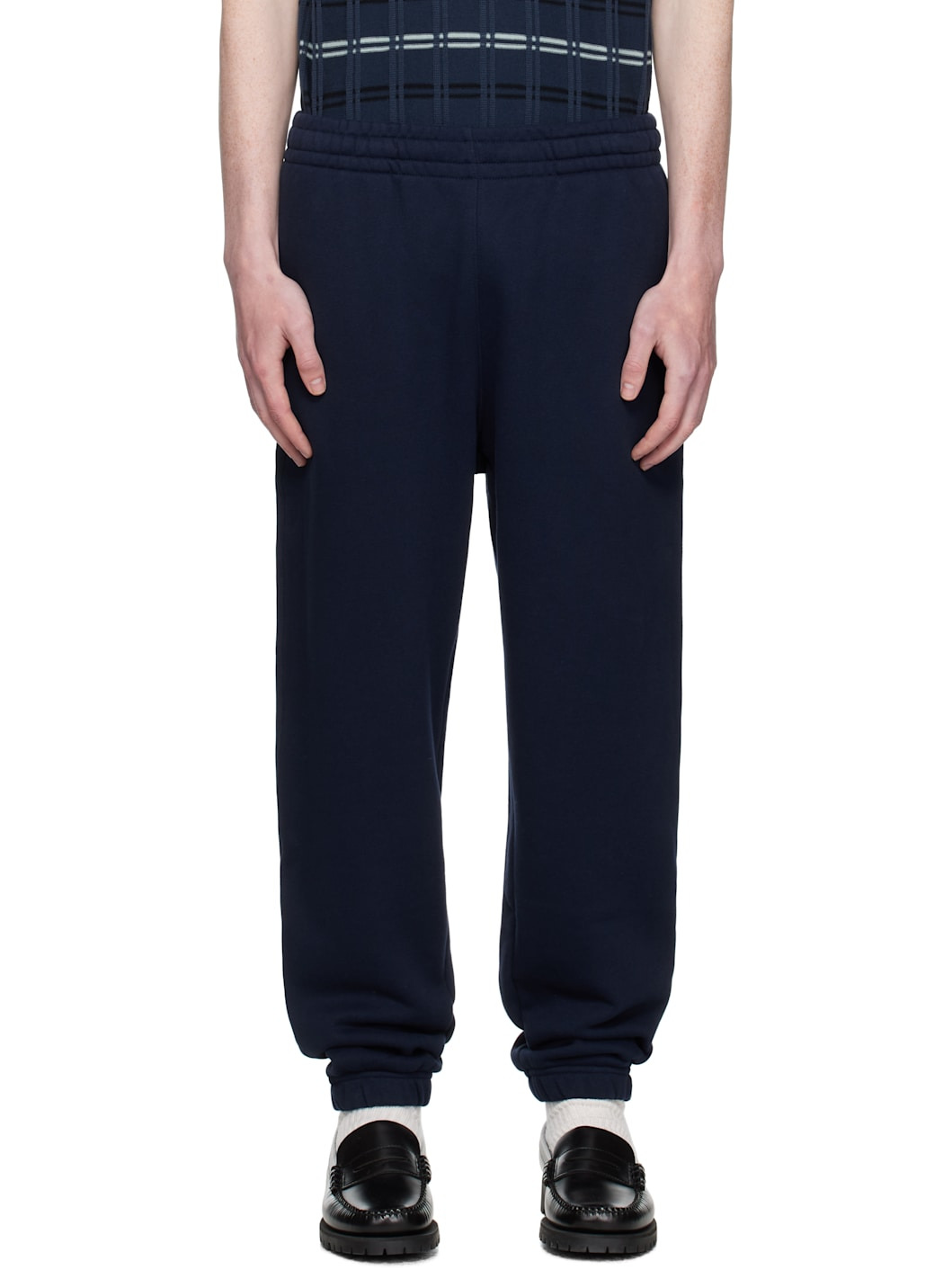 Organic cotton French terry sweatpants. · Loose-fit · Concealed drawstring at elasticized waistband · Three-pocket styling · Embroidered logo patch at leg · Elasticized cuffs Supplier color: Midnight blue 100% cotton. Made in Peru 252268M204003
