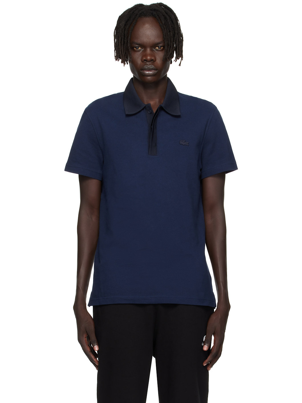 Lightweight organic cotton pique polo. · Knit spread collar and placket · Concealed three-button placket · Embroidered logo patch at chest · Vented side seams · Logo-engraved hardware Supplier color: Navy blue/Abysm Body: 100% cotton. Trim 1: 86% polyester, 13% polyamide, 1% elastane. Trim 2: 86% polyester, 13% polyamide, 1% elastane. Made in Turkey 252268M212001