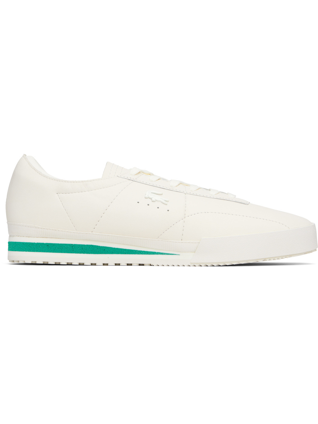 Low-top buffed leather sneakers. · Perforations at toe and sides · Lace-up closure · Padded collar · Logo hardware at outer side · Mesh lining · Foam rubber midsole · Treaded rubber sole Supplier color: Wht/Grn Upper: leather. Sole: rubber. Made in Thailand 252268M237024