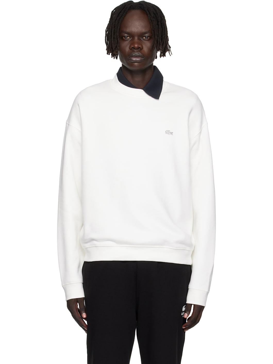 Heavyweight organic cotton French terry sweatshirt. · Rib-knit crewneck, hem, and cuffs · Embroidered logo patch at chest · Dropped shoulders Supplier color: White Body: 100% cotton. Trim: 98% cotton, 2% elastane. Made in Peru 252268M204004