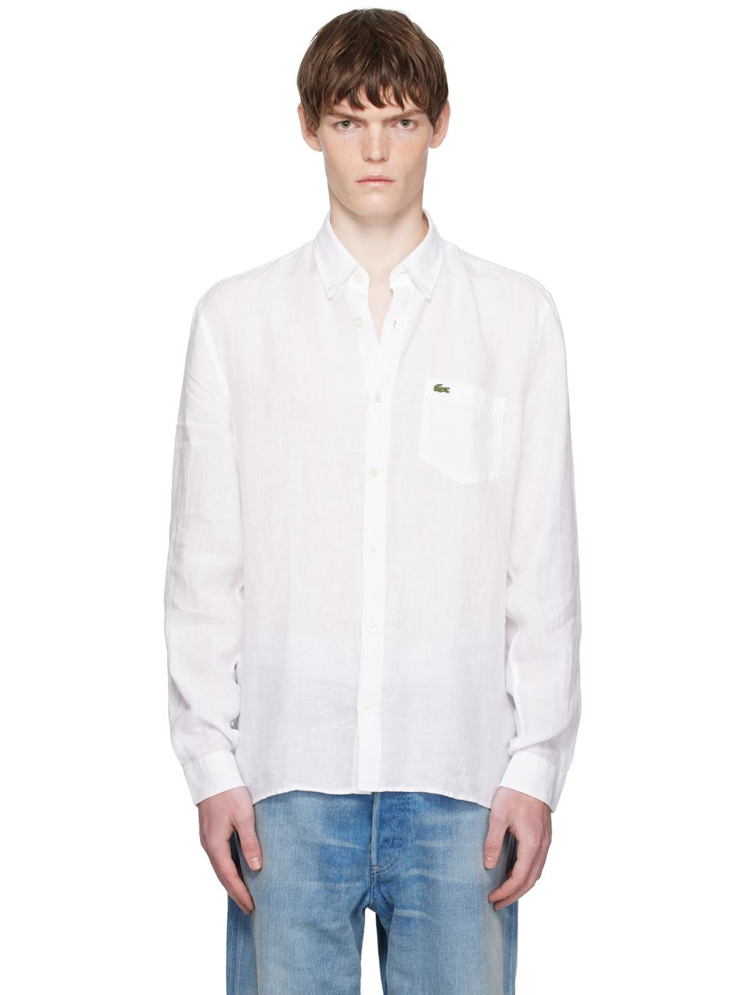 Linen gauze shirt. · Spread collar · Button closure · Patch pocket at chest · Embroidered logo patch at pocket · Buttoned barrel cuffs · Pleats at back yoke · Mother-of-pearl hardware Supplier color: White 100% linen. Made in India 252268M192003