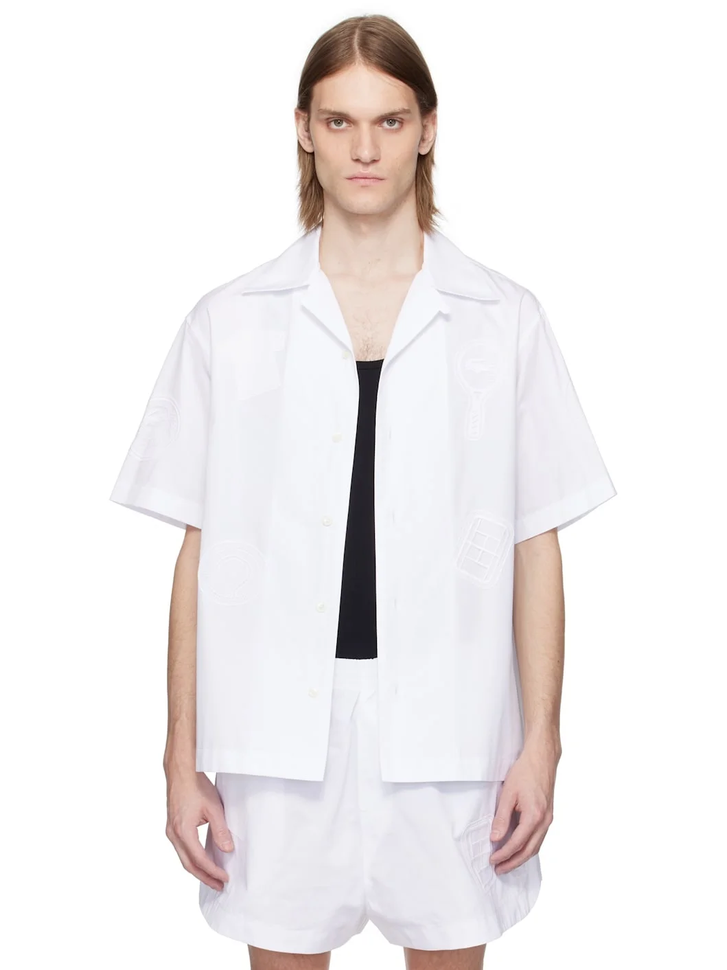 Cotton poplin shirt. Embroidered logo graphic appliques throughout. · Button fastening at open spread collar · Button closure · Embroidered logo patch at back collar · Twin pleats at yoke · Mother-of-pearl hardware Supplier color: White 100% cotton. Made in Portugal 251268M192016