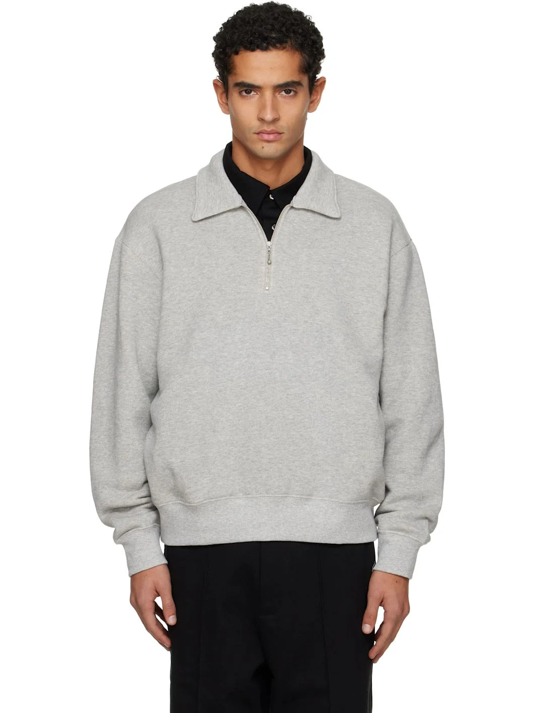 Cotton- and wool-blend fleece track jacket. · Pre-shrunk · Spread collar · Half-zip closure · Rib-knit hem and cuffs Supplier color: Grey 92% cotton, 8% wool. Made in United States 252840M202002