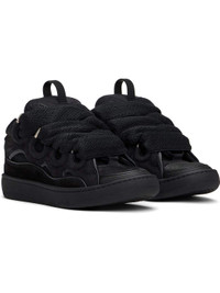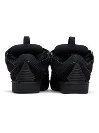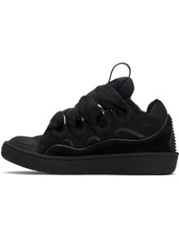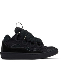 Low-top nappa calfskin, suede, and mesh sneakers in black. · Piping, cutouts, and rubberized trim throughout · Perforated detailing at toe · Logo embossed at toe and outer side · Lace-up closure · Logo plaque and pull-loop at tongue · Padded tongue and collar · Jersey lining · Treaded rubber sole Supplier color: Black/Black Upper: calfskin, textile. Sole: rubber. Made in Portugal 251254M237021
