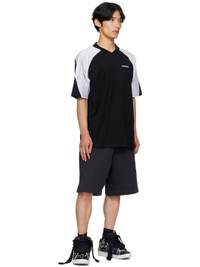 Low-top glittered patent calfskin sneakers. · Piping, cutouts, rubberized trim, and gradient throughout · Perforations at toe · Logo embossed at toe and outer side · Lace-up closure · Logo plaque and pull-loop at tongue · Padded tongue and collar · Jersey lining · Treaded rubber sole Supplier color: Black/White Upper: calfskin. Textile. Sole: rubber. Made in Portugal 251254M237076