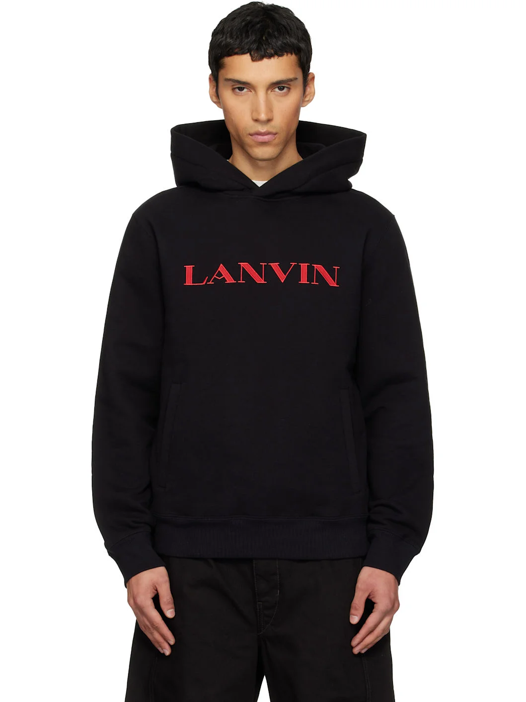 Black 'Lanvin' Embroidered Cotton Hoodie