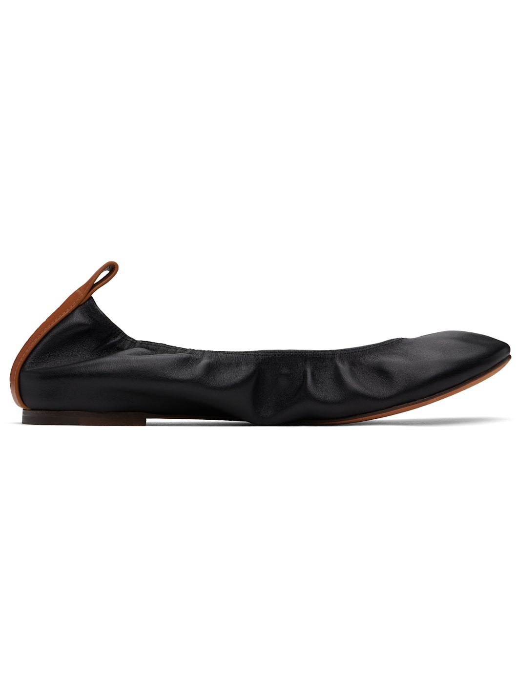 Buffed lambskin ballerina flats in black. · Elasticized collar · Pull-loop at heel collar · Logo-embossed buffed calfskin trim at heel tab · Buffed calfskin lining · Logo patch at padded leather footbed · Leather sole with rubber injection Supplier color: Black Upper: lambskin. Sole: leather, rubber. Made in Italy 251254F118002