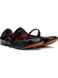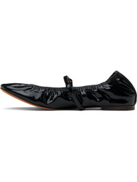 Patent calfskin ballerina flats in black. · Elasticized collar · Pin-buckle strap at vamp · Gold-tone logo stamp at heel counter · Buffed leather and suede lining · Suede sole with rubber injection Supplier color: Black Upper: calfskin. Sole: leather, rubber. Made in Italy 251254F118000