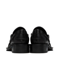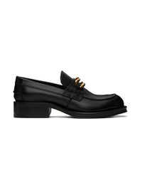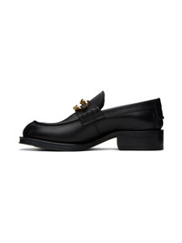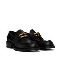 Buffed calfskin loafers in black. · Moc toe · Strap with graphic hardware at vamp · Buffed calfskin lining · Goodyear welt · Stacked leather heel with rubber injection · Rubber, calfskin, and metal outsole Supplier color: Black