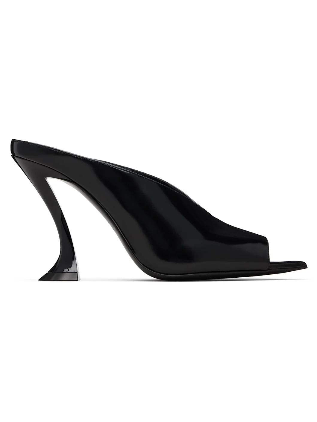 Polished calfskin heeled sandals. · Open pointed toe · Logo stamp at padded footbed · Lacquered stiletto heel with rubber injection · Leather sole with rubber injection · Heel: H3.75" Supplier color: Black Upper: calfskin. Sole: leather, rubber. Made in Italy 252254F125000