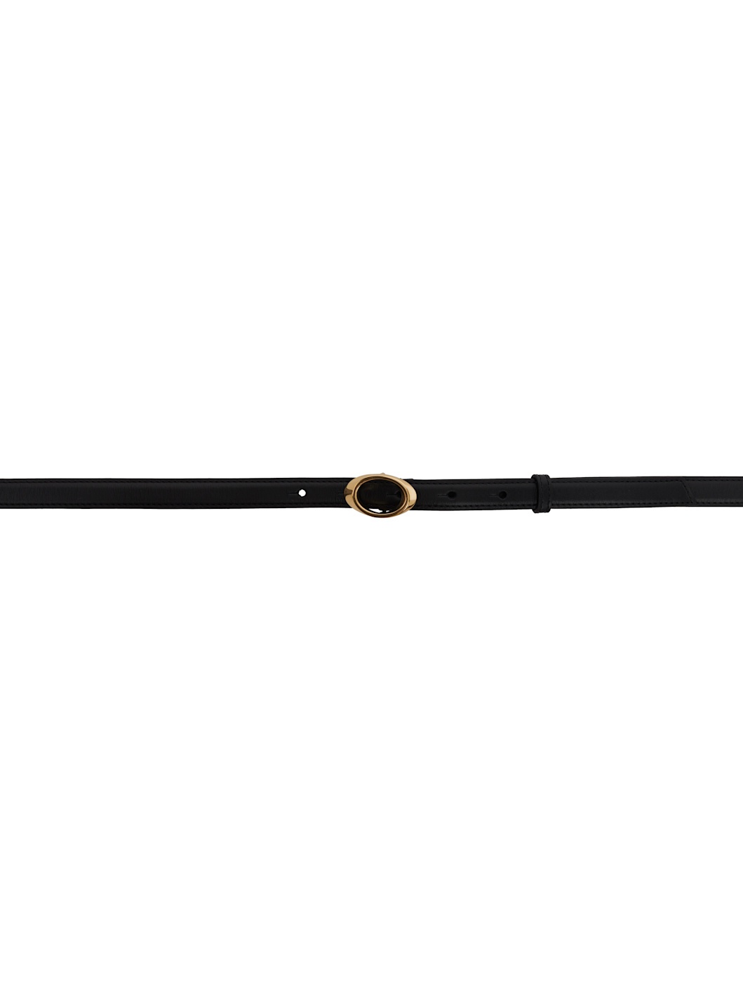 Grained calfskin belt in black. · Post-stud fastening · Gold-tone hardware · W0.5" Supplier color: Black Calfskin. Made in Italy 251254F001000