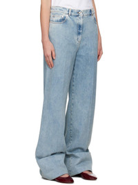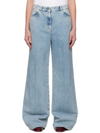 Blue Wide-Leg Cuffed Jeans