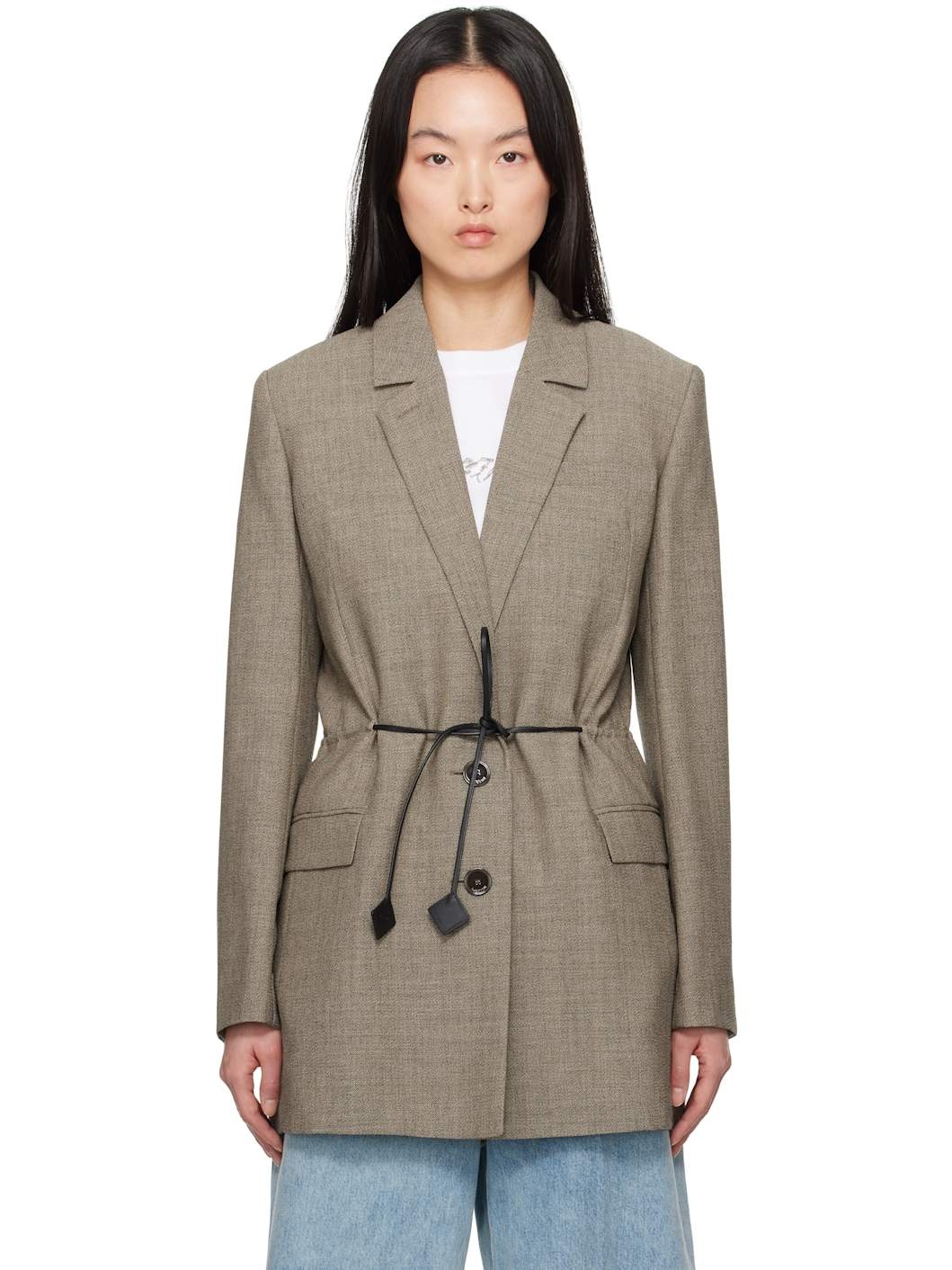 Plain-woven virgin wool blazer. · Button fastening at notched lapel · Two-button closure · Self-tie fastening at front · Welt pocket and flap pockets · Padded shoulders · Button fastening at vented cuffs · Central vent at back hem · Partial bemberg lining Supplier color: Lin 100% virgin wool. Made in Italy 251254F057000