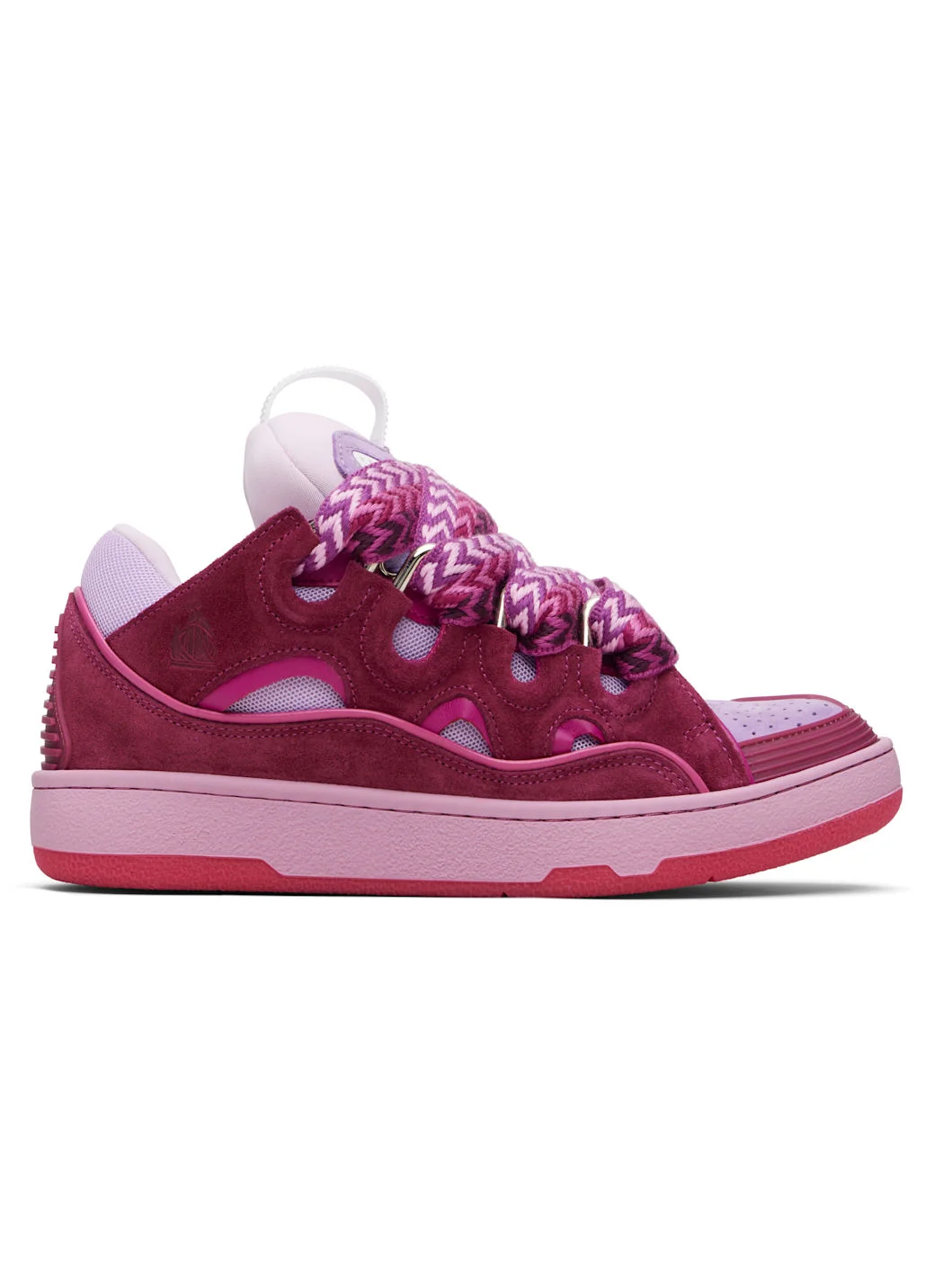 Low-top calfskin suede and mesh sneakers. · Piping, cutouts, and rubberized trim throughout · Perforations at toe · Logo embossed at toe and outer side · Lace-up closure · Logo plaque and pull-loop at tongue · Padded tongue and collar · Jersey lining · Treaded rubber sole Supplier color: Lilac Upper: calfskin, textile. Sole: rubber. Made in Portugal 252254M237058