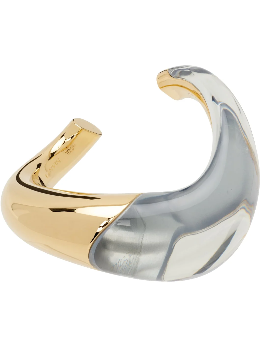 Open cuff bracelet in gold-tone brass and transparent resin. · Logo engraved at inner cuff · D2.5" Supplier color: Gold/Transparent Brass, resin. Made in Italy 252254F020000