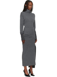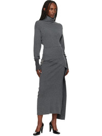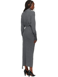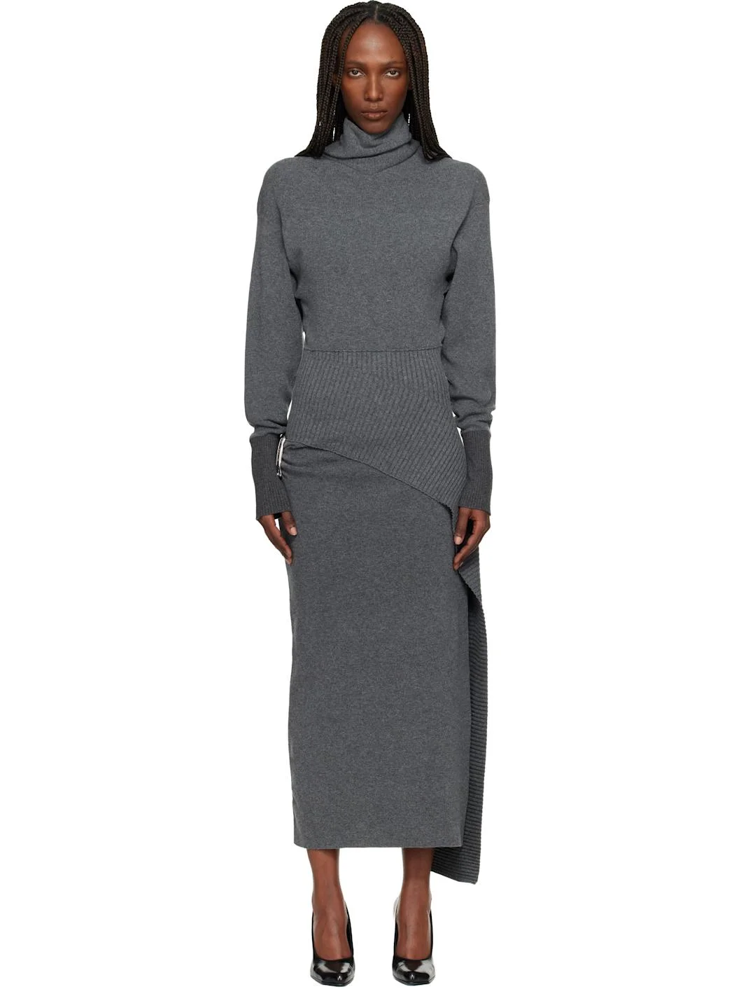 Knit stretch wool- and cashmere-blend maxi dress. · Turtleneck · Rib-knit trim, draping, and brooch at waist · Asymmetric hem · Dropped shoulders Supplier color: Dove 79% wool, 19% cashmere, 1% polyamide, 1% elastane. Made in Italy 252254F055000