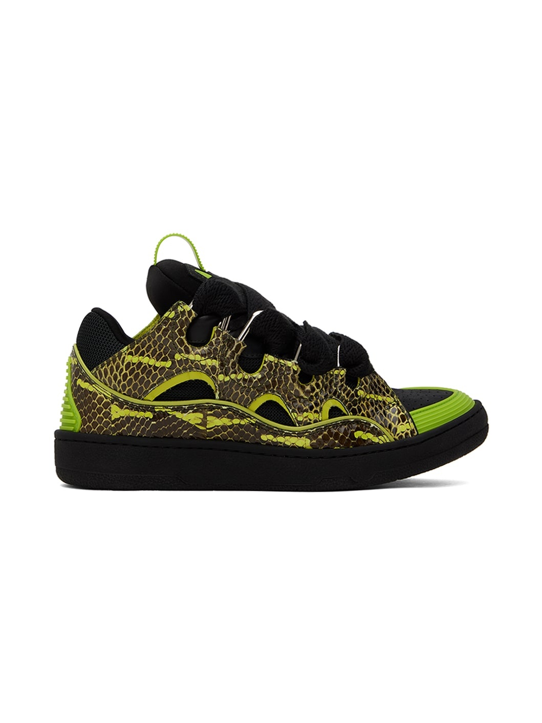 Low-top mangrove snakeskin, suede, and mesh sneakers in green and black. · Perforated detailing at toe · Lace-up closure · Logo plaque and pull-loop at padded tongue · Padded collar · Textured rubber trim at heel counter · Bonded jersey lining · Crepe rubber midsole · Treaded rubber sole Supplier color: Green/Black Upper: snakeskin, calfskin, textile. Sole: rubber. Made in Portugal 241254M237048