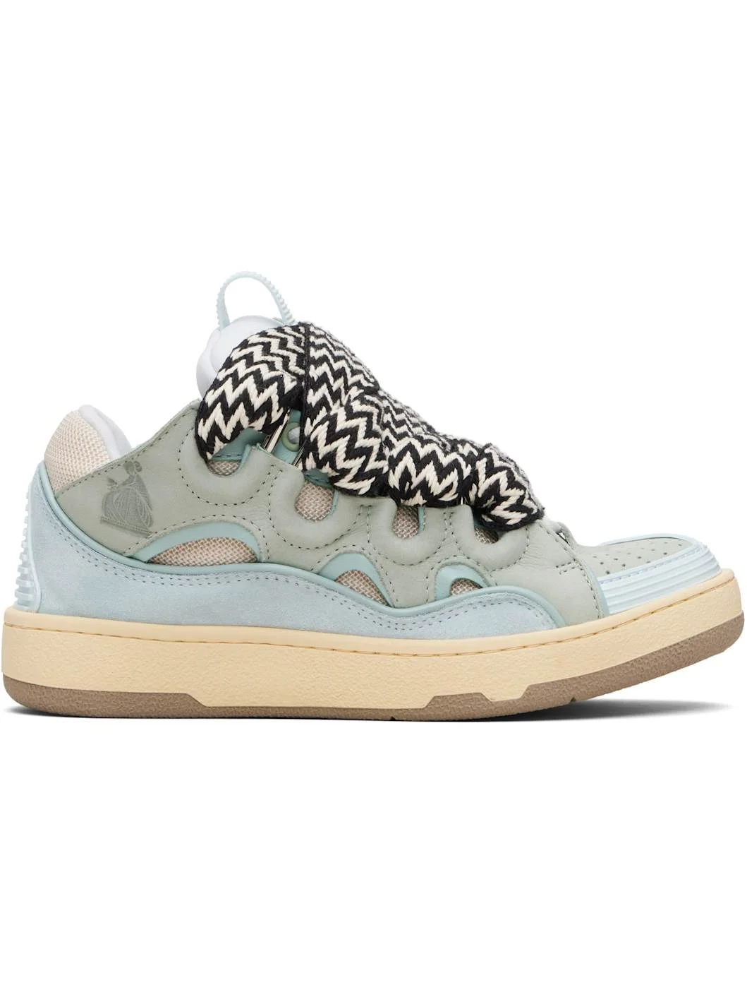 Low-top calfskin suede, nappa calfskin, and mesh sneakers. · Piping, cutouts, and rubberized trim throughout · Perforations at toe · Logo embossed at toe and outer side · Lace-up closure · Logo plaque and pull-loop at tongue · Padded tongue and collar · Jersey lining · Treaded rubber sole Supplier color: Pale blue Upper: calfskin, textile. Sole: rubber. Made in Italy 252254F128018