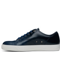Low-top polished calfskin sneakers. · Gradient throughout · Calfskin cap toe · Lace-up closure · Padded tongue and collar · Metal eyelets at inner side · Buffed calfskin and suede lining · Treaded rubber sole Supplier color: Dark blue/Blue Upper: calfskin. Sole: rubber. Made in Portugal 252254M237067