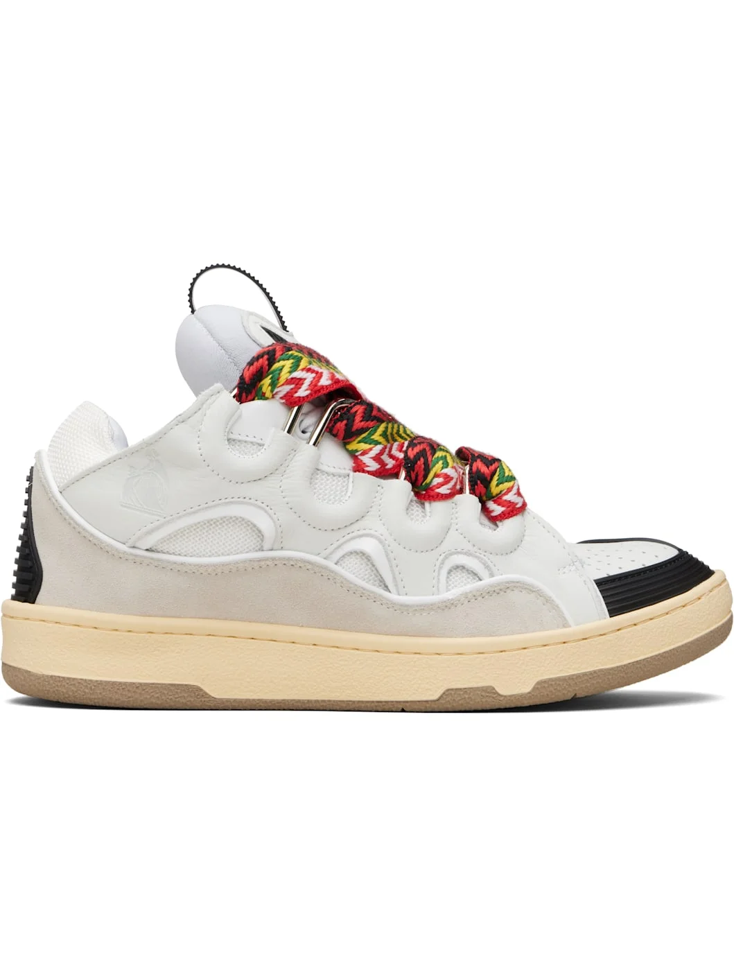 Low-top calfskin suede, nappa calfskin, and mesh sneakers. · Piping, cutouts, and rubberized trim throughout · Perforations at toe · Logo embossed at toe and outer side · Lace-up closure · Logo plaque and pull-loop at tongue · Padded tongue and collar · Jersey lining · Treaded rubber sole Supplier color: White Upper: calfskin, textile. Sole: rubber. Made in Italy 252254M237014