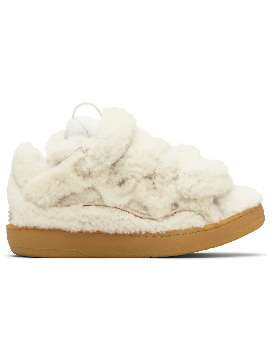 Low-top calfskin shearling sneakers. · Piping, cutouts, and rubberized trim throughout · Lace-up closure · Pull-loop at padded tongue · Padded collar · Jersey lining · Treaded rubber sole Supplier color: Beige Upper: calfskin. Sole: rubber. Made in Portugal 252254F128013