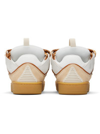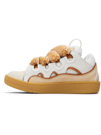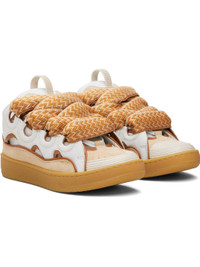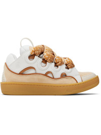 Low-top calfskin suede, nappa calfskin, and mesh sneakers. · Piping, cutouts, and rubberized trim throughout · Perforations at toe · Logo embossed at toe and outer side · Lace-up closure · Logo plaque and pull-loop at tongue · Padded tongue and collar · Jersey lining · Treaded rubber sole Supplier color: Optic white/Honey Upper: calfskin, textile. Sole: rubber. Made in Portugal 252254M237059