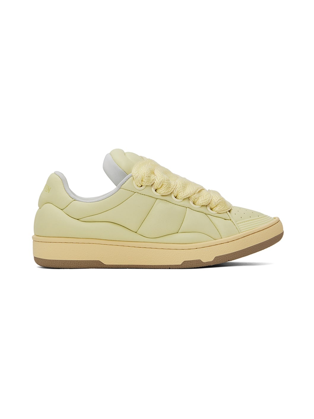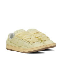 Low-top quilted buffed lambskin sneakers in yellow. · Perforated detailing at toe · Lace-up closure · Logo embossed at padded tongue · Padded collar · Logo embroidered at heel tab · Bonded jersey lining · Treaded rubber sole Supplier color: Chamomile Upper: calfskin. Sole: rubber. Made in Portugal 241254M237014