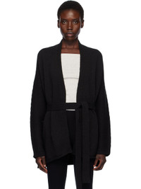 Knit pima cotton cardigan. · Hand-dyed · Shawl collar · Belt loops at waist · Detachable self-tie belt · Rolled edge at hem · Dropped shoulders Supplier color: Black melange 100% pima cotton. Made in Peru 252874F095000