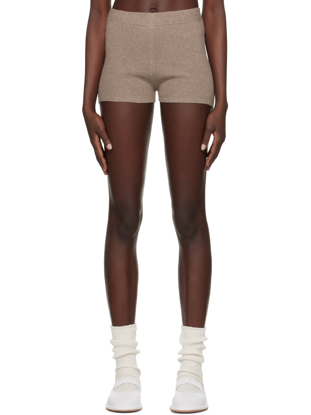 Lightweight rib knit stretch pima cotton shorts. Elasticized waistband. Supplier color: Wood