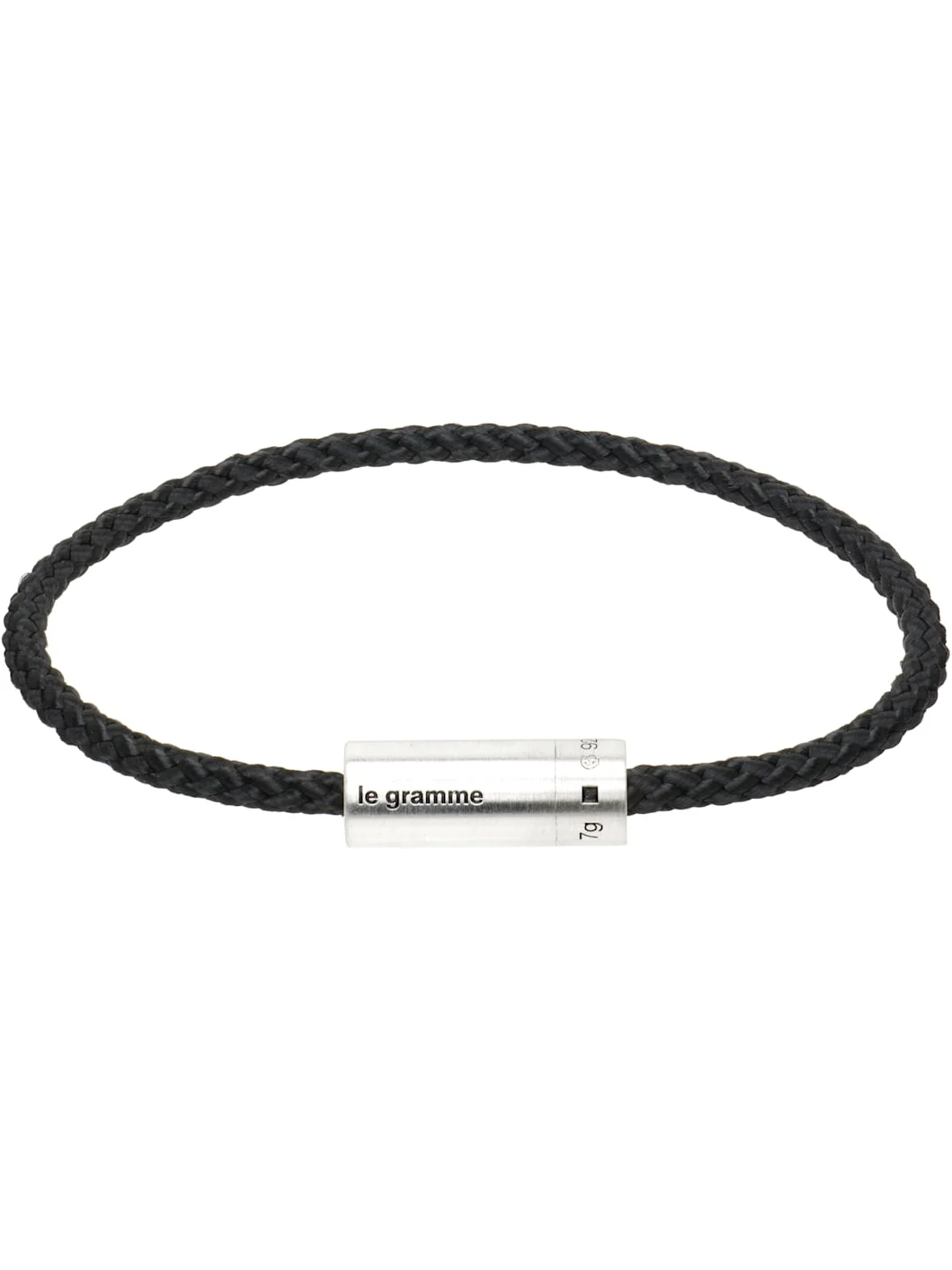 Braided bracelet in black. Logo and hallmarking at recycled sterling silver screw clasp. Supplier color: Black Recycled 925 sterling silver, textile. Made in France 261694M142013