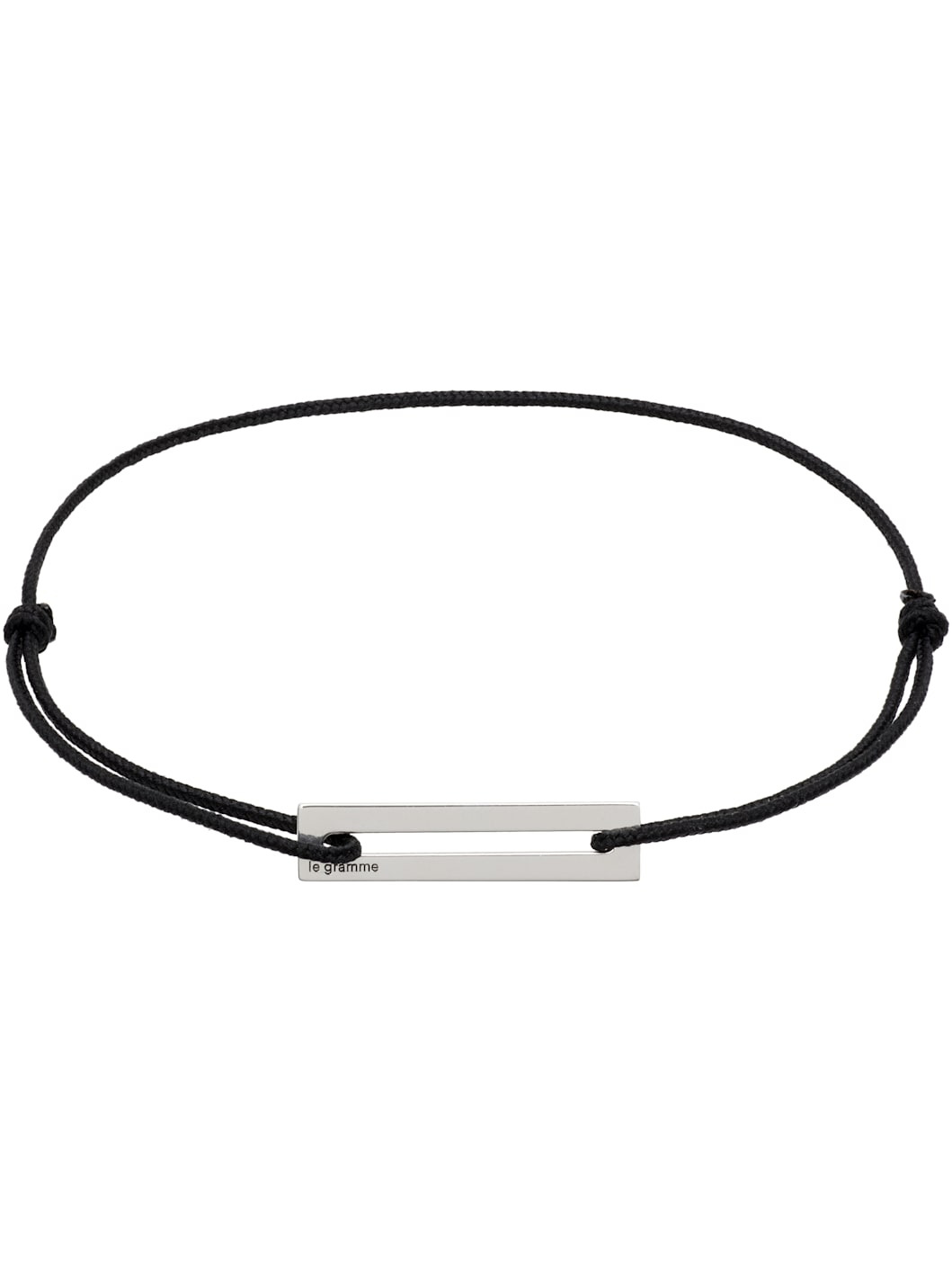 Le 1.7g Sterling Silver, Enamel and Cord Bracelet Black